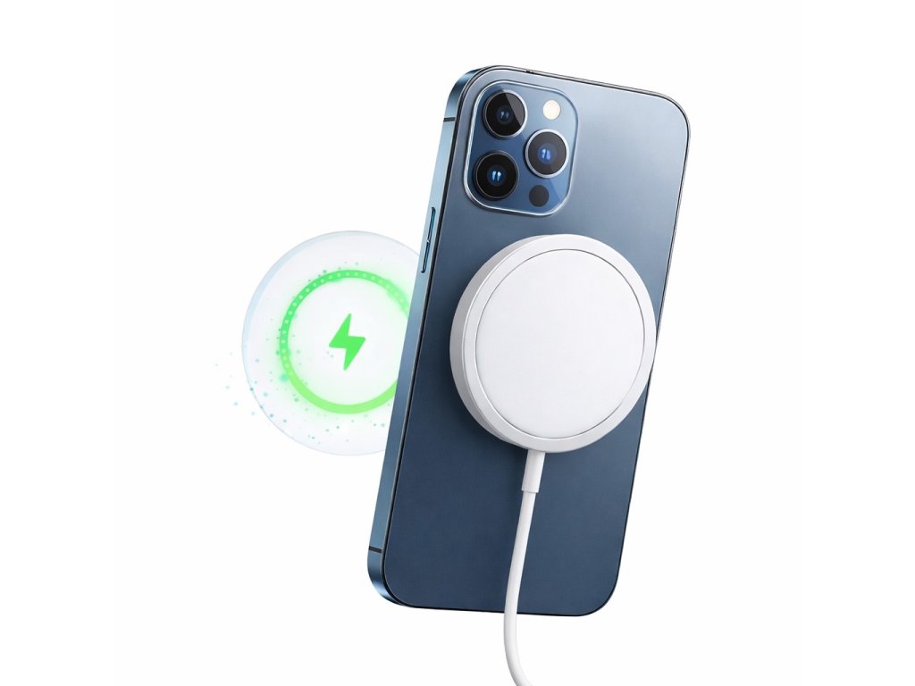 Bezdrátová MagSafe nabíječka pro Apple zařízení je praktickým řešením pro každodenní nabíjení iPhonů. Vestavěné magnety se automaticky zarovnají s iPhonem 12 a novějšími modely, díky čemuž je telefon vždy ve správné poloze pro rychlé bezdrátové nabíjení až 15 W.